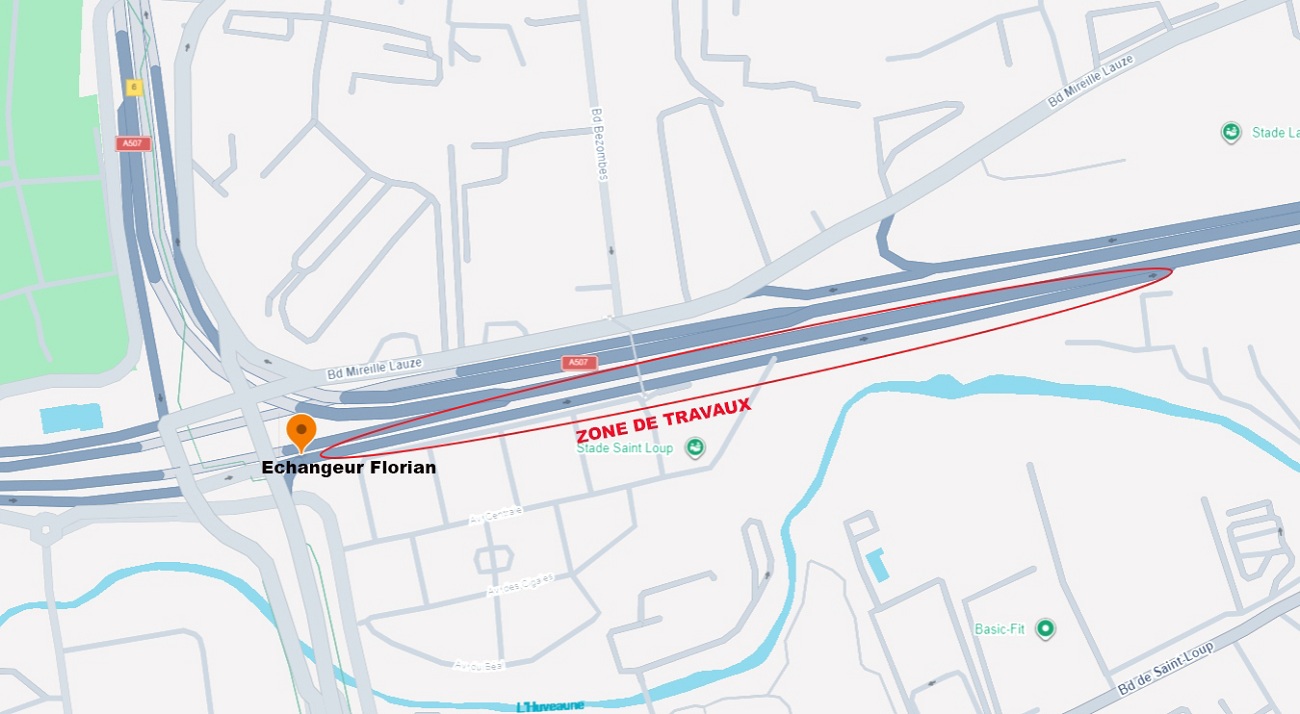 Dans le cadre des travaux de mise en place d’une régulation d’accès par feux à l’autoroute A50 au niveau de l’échangeur Florian, la bretelle d’accès à l’A50 dans le sens Marseille vers Aubagne sera fermée à la circulation les nuits du lundi soir au vendredi matin (22h-05h), entre le lundi 16 mars 2026 et le vendredi 29 mai 2026 (détails et carte ci-dessous).