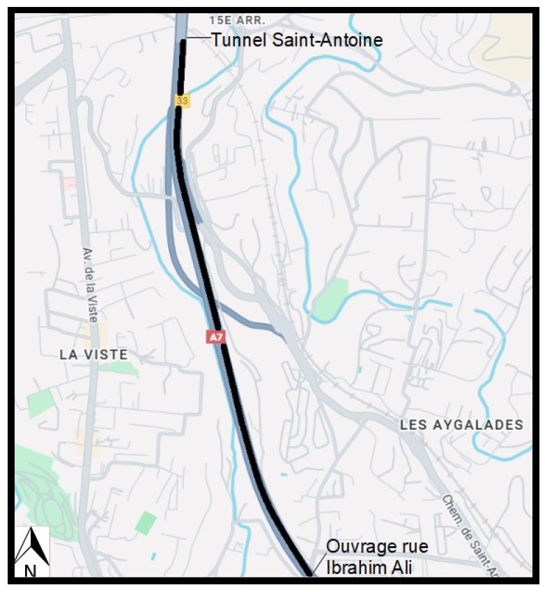 Les travaux seront menés entre le 26 janvier et le 26 juin 2026 et nécessiteront des mesures de restriction sur l’autoroute A7 entre l’ouvrage de la rue Ibrahim Ali et le tunnel Saint-Antoine y compris la bretelle d’entrée des Aygalades :