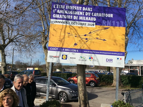 Aménagement du carrefour giratoire de Milhaud sur la RN113 : Pose officielle de la première pierre