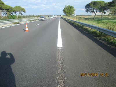 Ainsi, localement, la DIRMED a mis en place en octobre 2016 une technique d’engravures de type sinusoïdal (dit « rumble strips »), réalisée par fraisage sur le marquage de rive en bande d’arrêt d’urgence sur la RN 113 comprise entre les PR65 et 60 sens 2 (au niveau de St Martin de Crau).