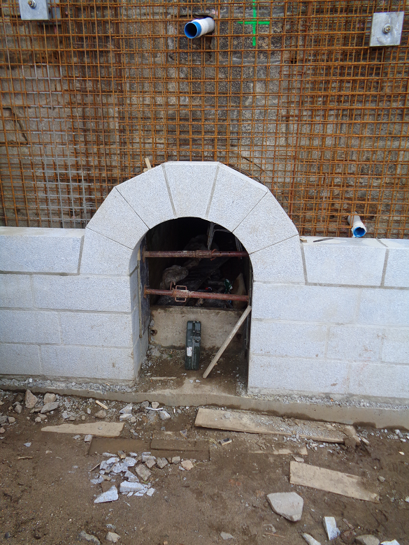Il est construit, tout comme les murs en retour, en maçonnerie de moellons de granite de la région.
